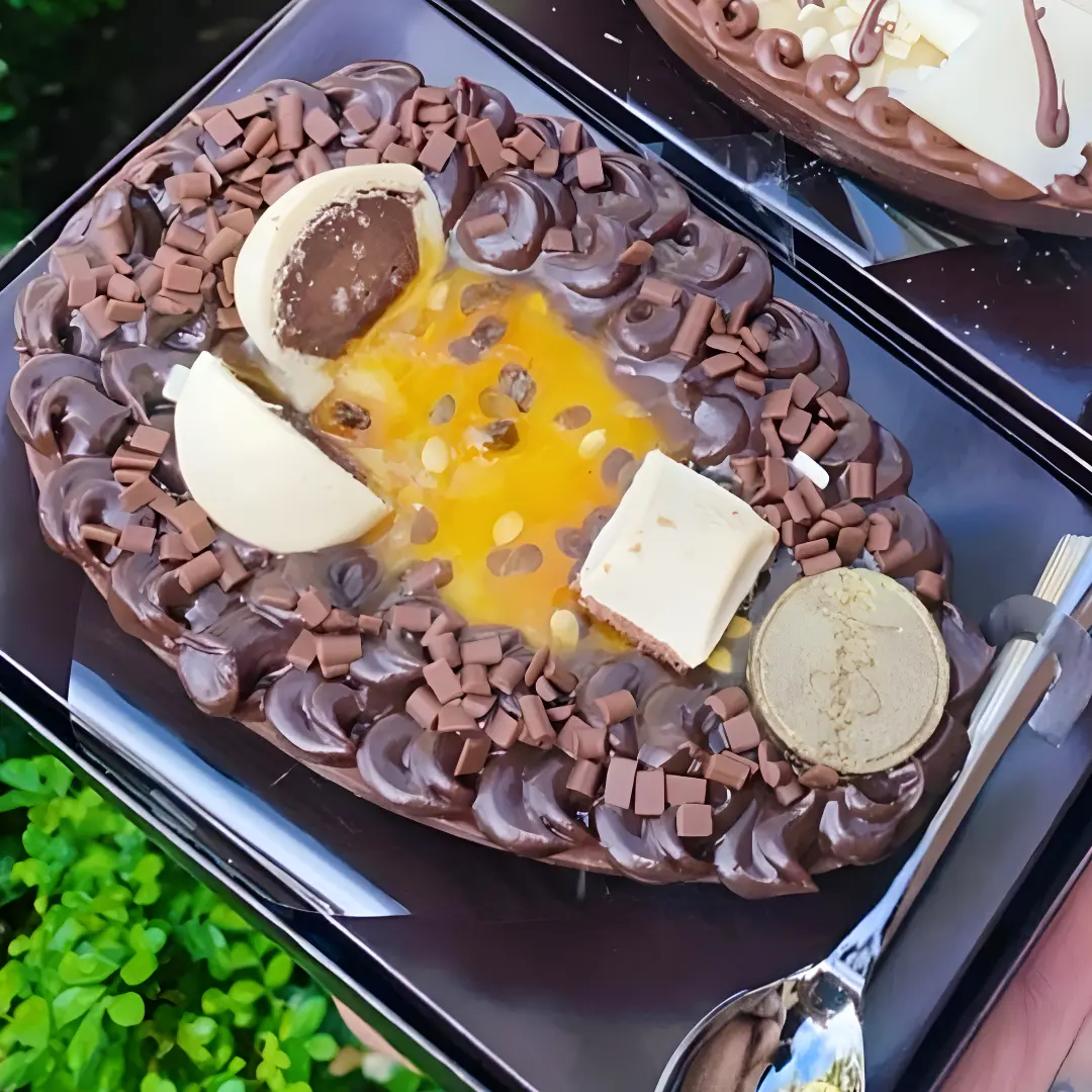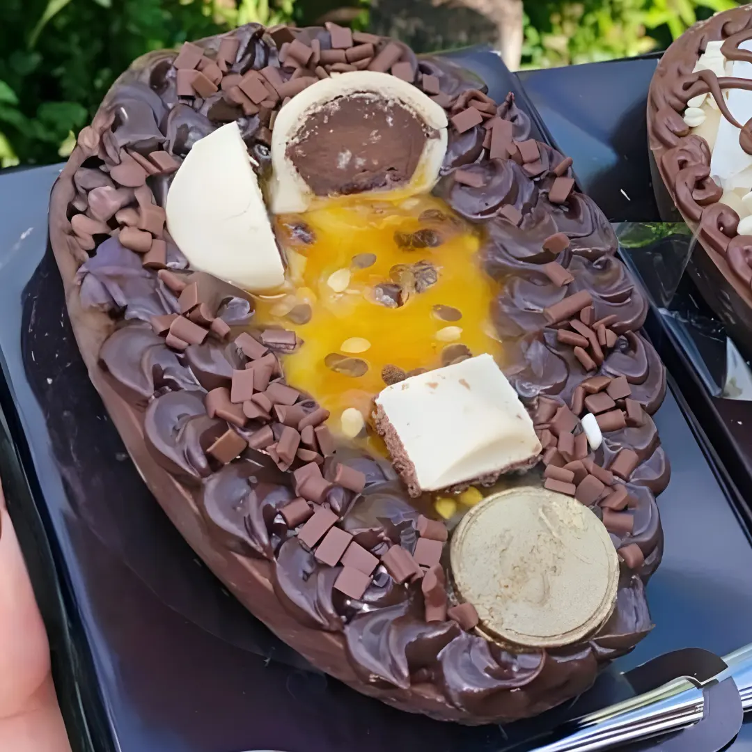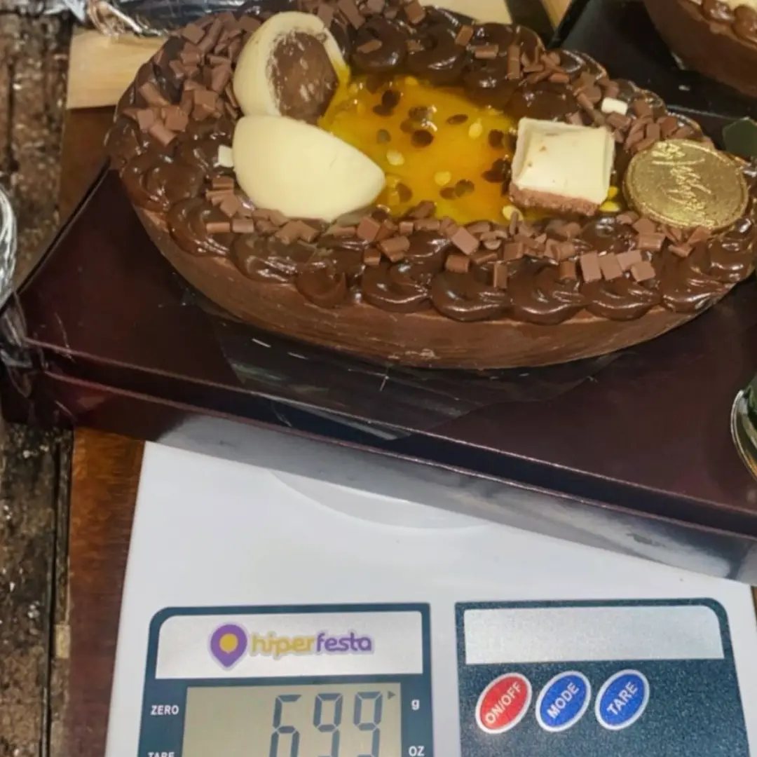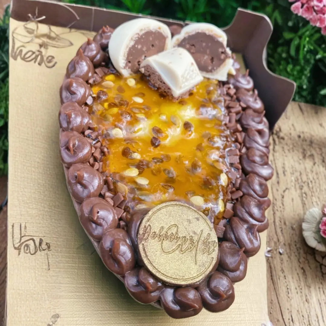 Produzido artesanalmente, esse ovo se destaca pela harmonia de sabores e pela textura bem definida das camadas. O recheio é generoso, pensado para quem gosta de sobremesas bem montadas, com contraste e final agradável, sem exageros.